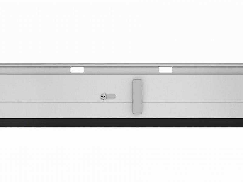 Ein manueller Verschlussriegel sichert das Tor durch Bolzen in beide Führungsschienen. Die Bedienung erfolgt wahlweise von innen oder aussen und ist über ein Standard-PZ abschließbar. Der Antrieb wird zur Sicherheit automatisch abgeschaltet.