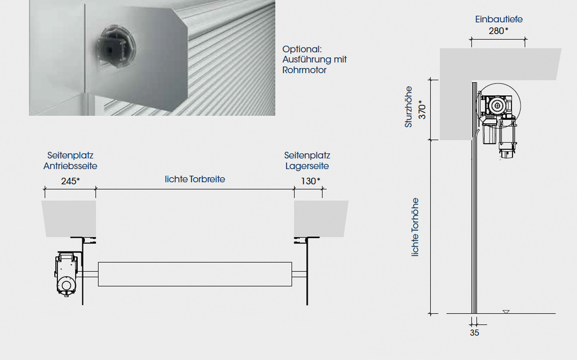 Weitere technische Details finden Sie in unserer Technik-Broschüre für Rolltore.